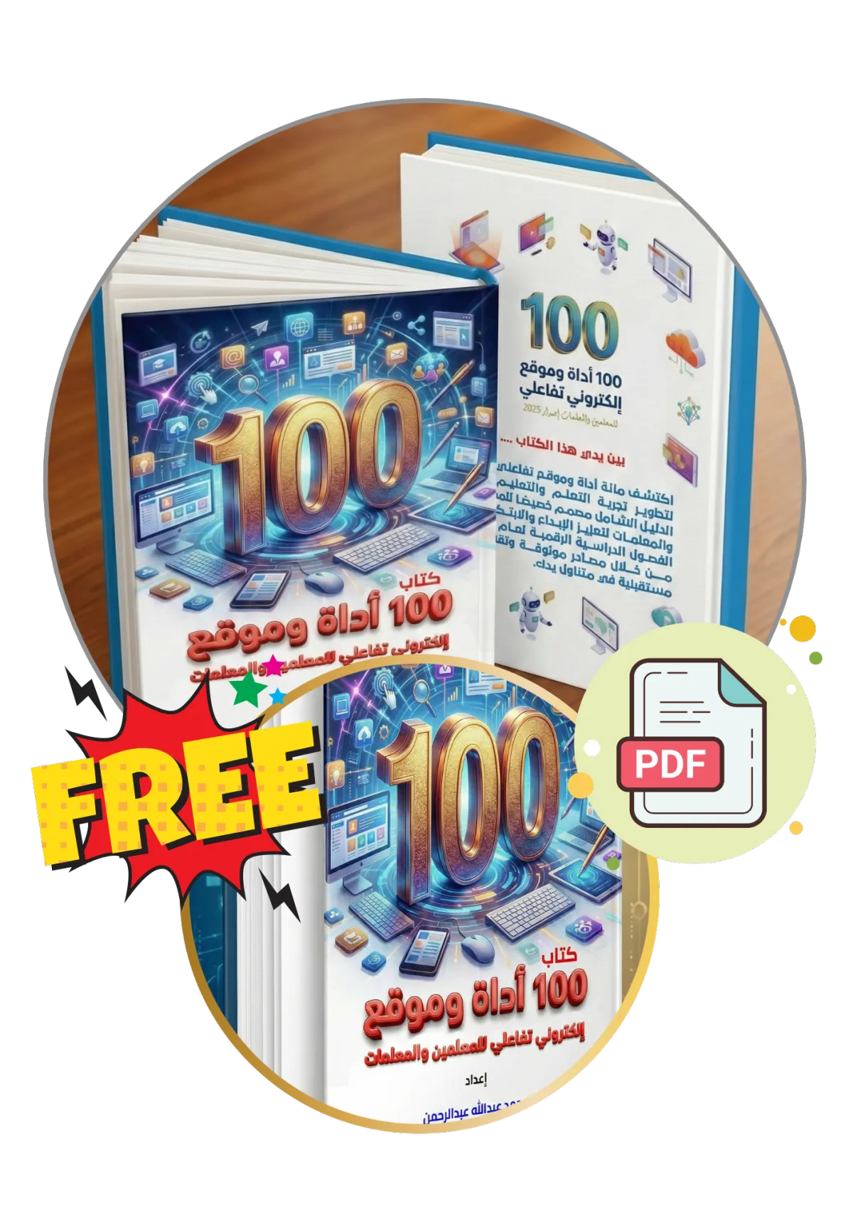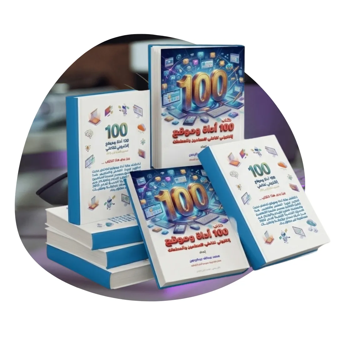هو كتاب رقمي تعليمي يجمع 100 أداة ومنصة إلكترونية تفاعلية تم اختيارها بعناية لمساعدة المعلمين والمعلمات على تطوير أدائهم المهني، وتحسين أساليب التدريس، ورفع مستوى التفاعل داخل الصف وخارجه.